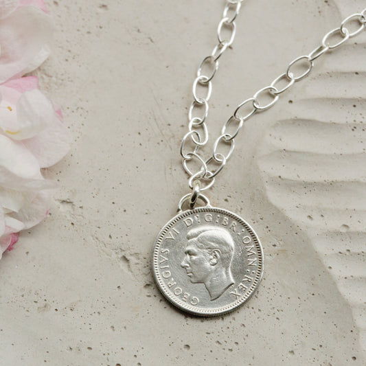 1946 British Sixpence Necklace - 80th Birthday Gift