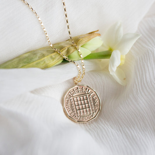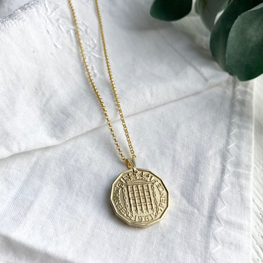 1965 British Sixpence Necklace - 60th Birthday Gift - Silver