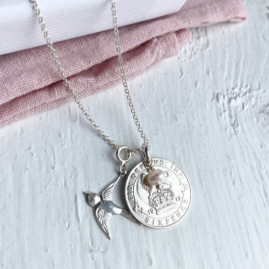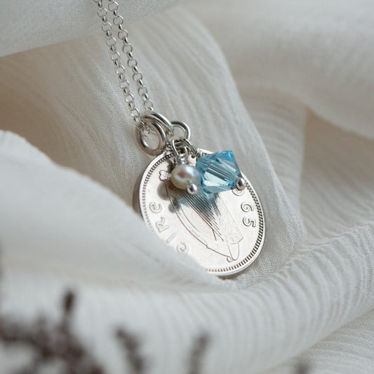 1965 British Sixpence Necklace - 60th Birthday Gift - Silver