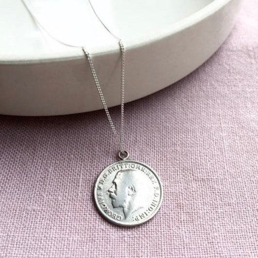 1887 Queen Victoria Sixpence Necklace - Sterling Silver