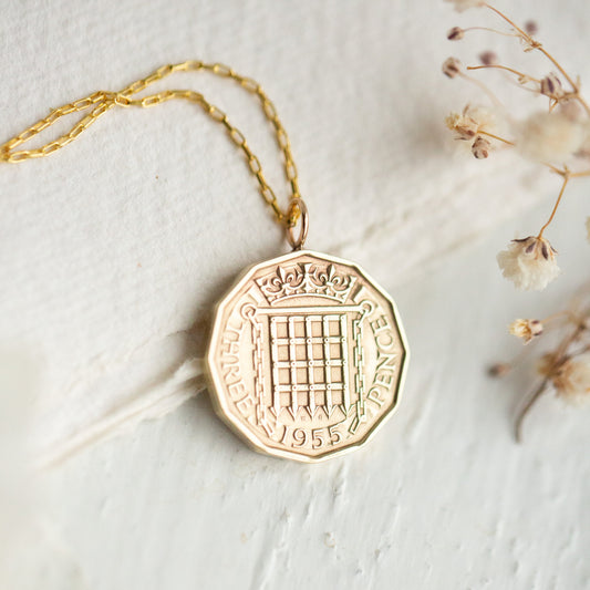 1945 British Sixpence Necklace - 80th Birthday Gift - Silver