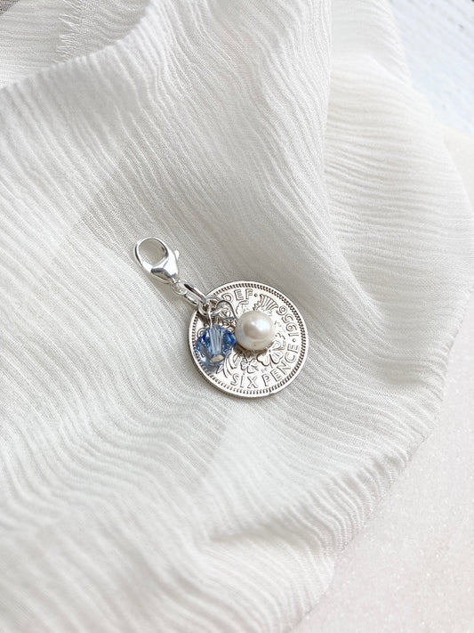 Something Old to Blue- Silver Sixpence Wedding Charm