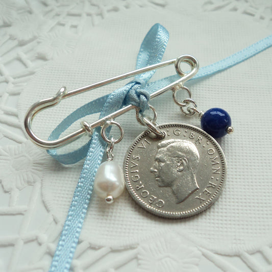Silver Sixpence Wedding Pin - Bridal Gift Something Old