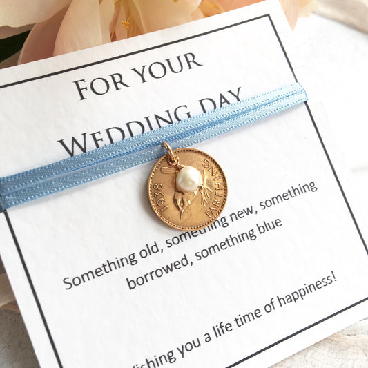 Something Old, New, Borrowed and Blue Farthing Bridal Charm