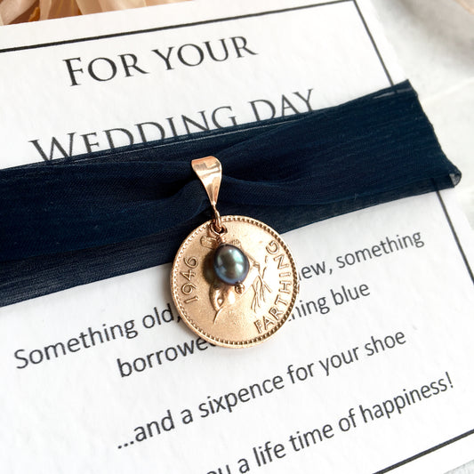 Something Old, New, Borrowed and Navy Blue Farthing Bridal Charm