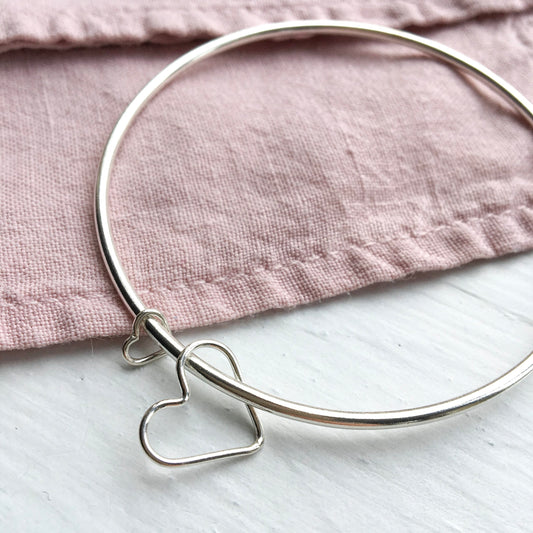 'You and Me' Heart Bangle - Sterling Silver Bracelet