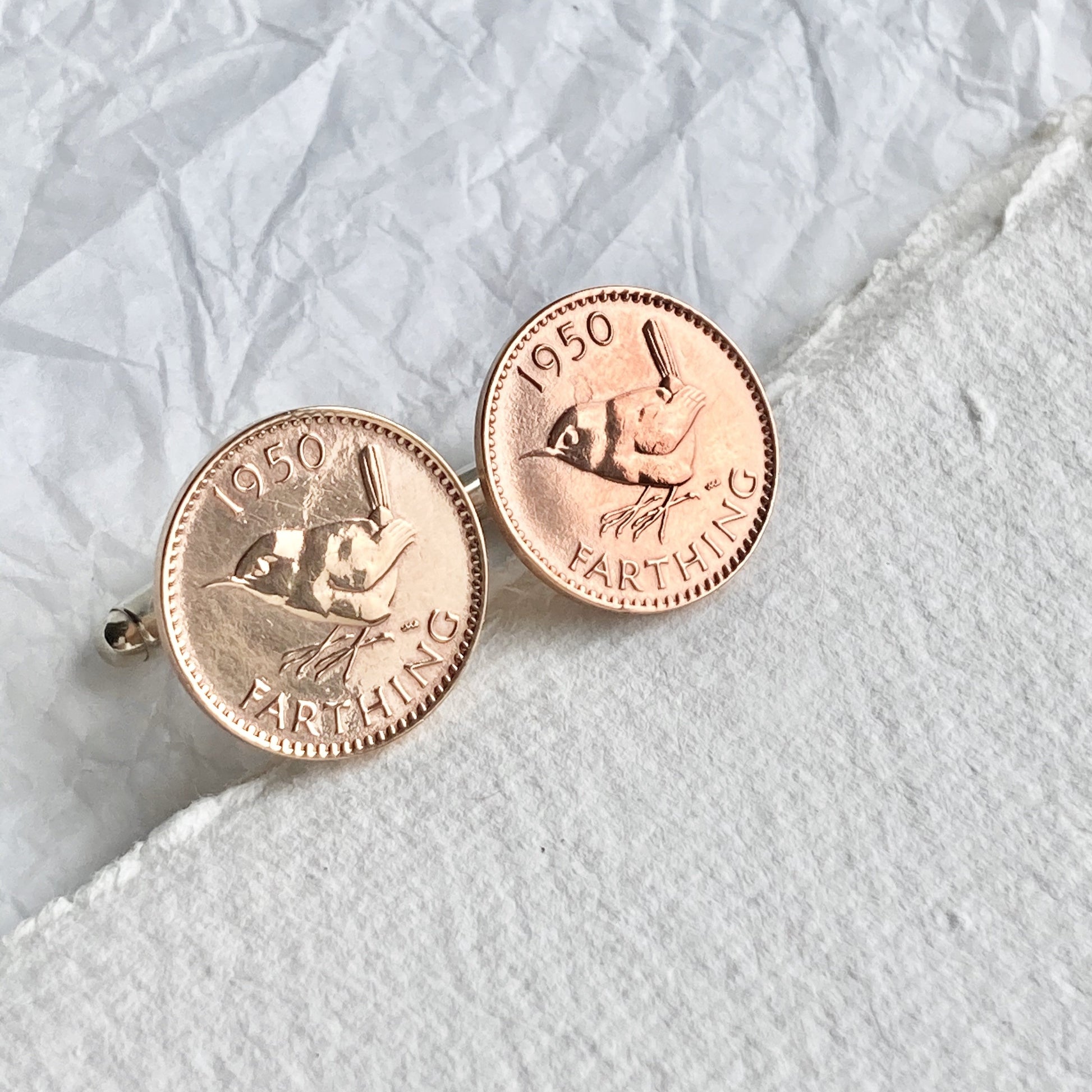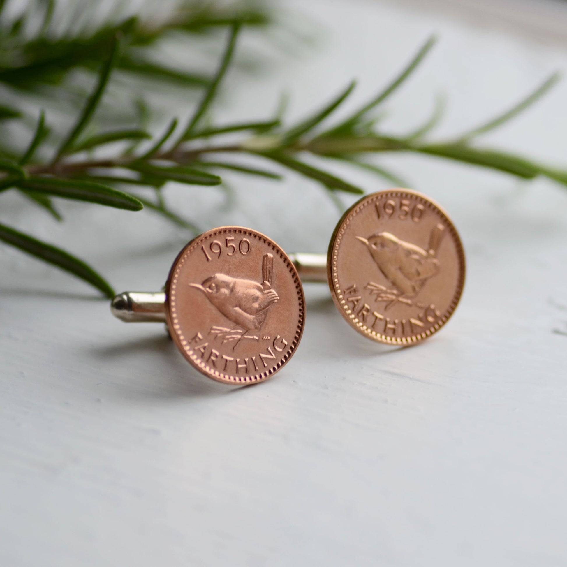 Made using real British farthings, these cufflinks are the perfect birthday or anniversary gift. They would also be a fantastic way to celebrate a bronze anniversary gift for your husband, brother or father.